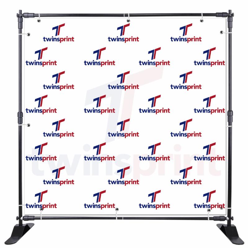 This large banner frame is a great alternative to standard pop up backwall displays. The One Choice Slider frame can adjust to display a 8W’ x 7.5’H or 10’W x 7.5’H graphic and 8W’ x 7.5’H or 10’W x 7.5’H graphic. Graphics are printed on dye sub stretch fabric with pole pockets sewn to the top and bottom for easy graphic installation.