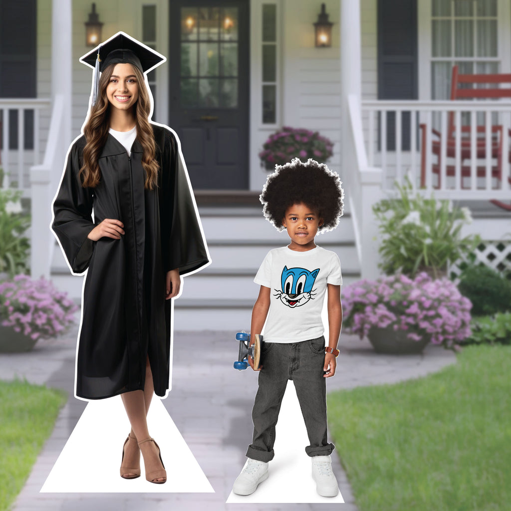 Life-size cutouts are perfect for birthdays, events, or even memorials. We can make them up to 10 ft tall, cut to shape for a realistic look. From people and pets to favorite characters, your design stands securely with a sturdy easel. Just send us your photo and let’s create yours today!