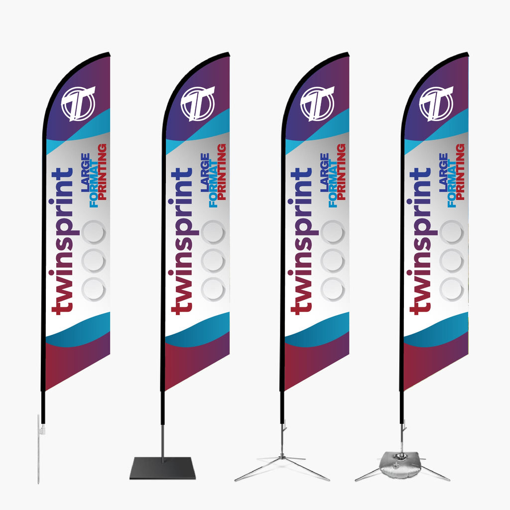 Stand tall and get noticed with our Feather Angled Flags — perfect for taking your branding to new heights! Printed in full color on durable mesh polyester, these flags are built for both indoor and outdoor use.