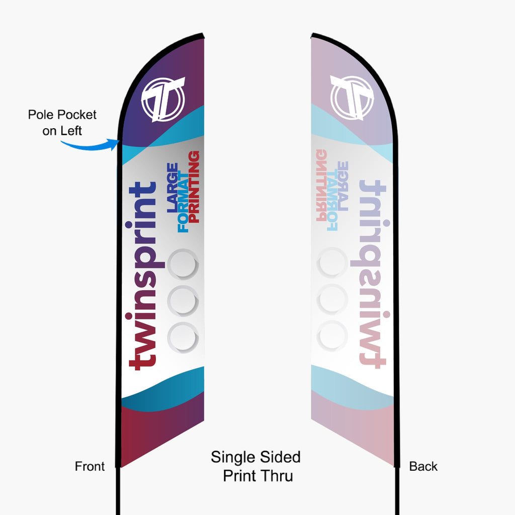 Single-Sided (Print Thru): Pole sleeve on the left when viewed from the front