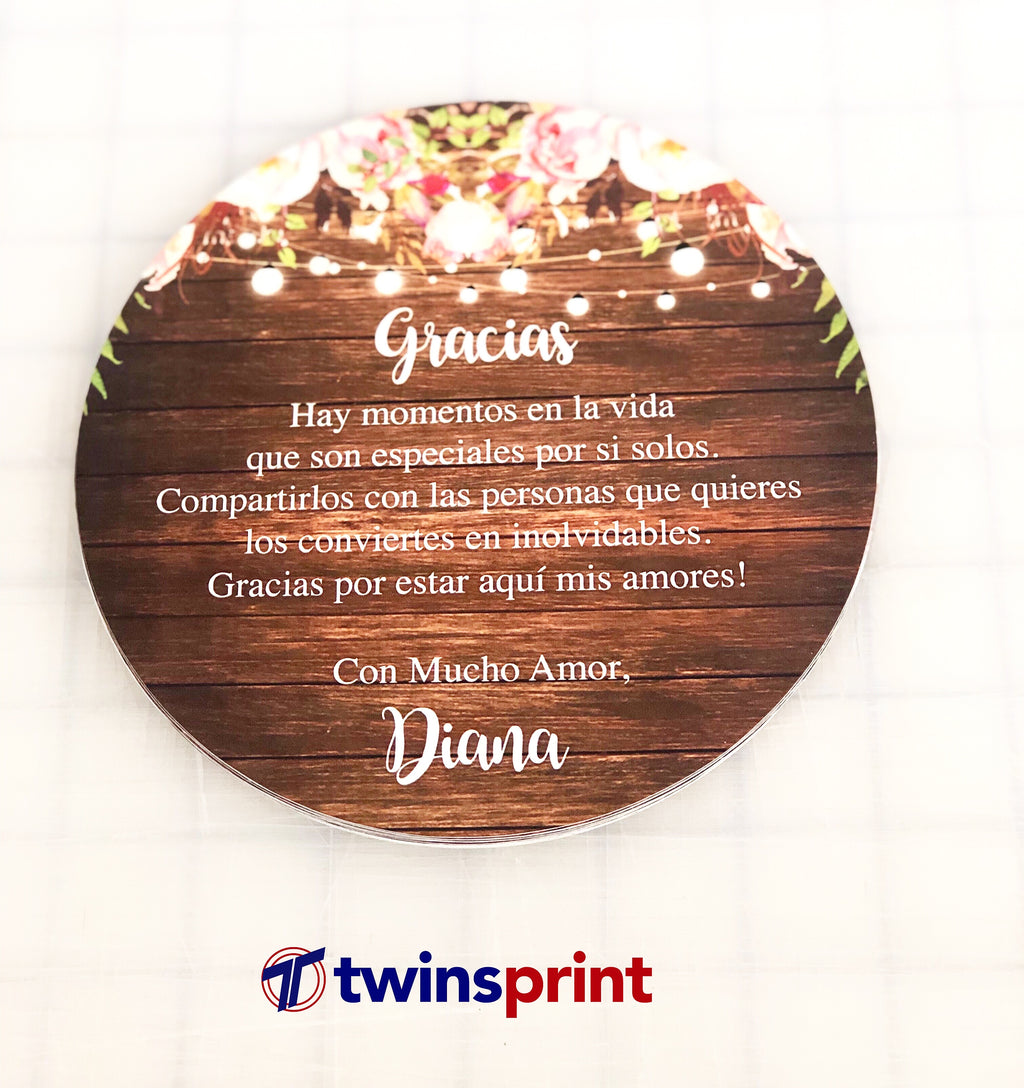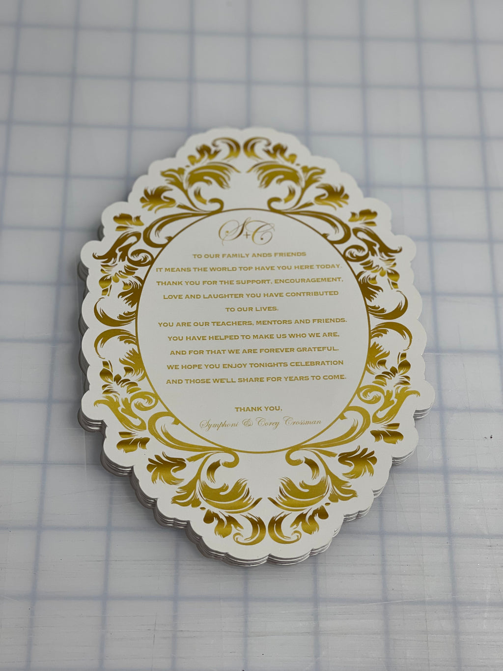Our thank you notes/menus are printed on standard 12pt. Card stock.